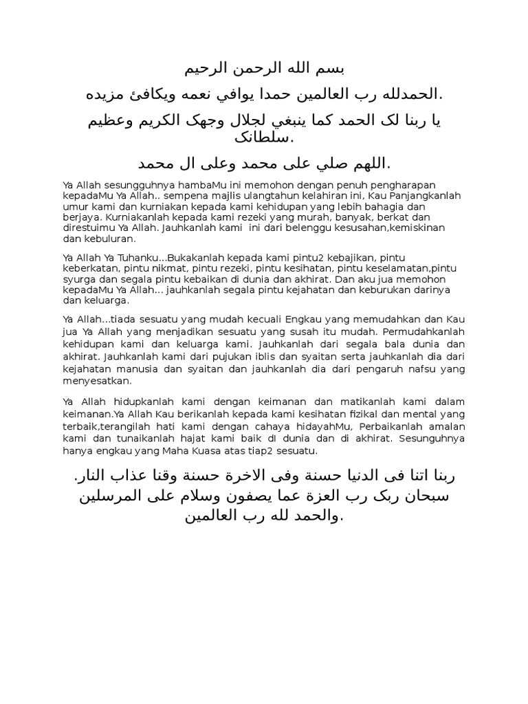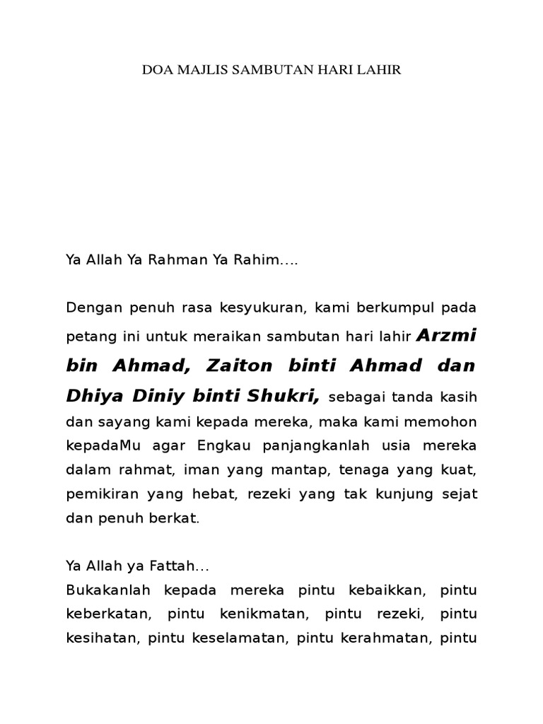 Doa Majlis Sambutan Hari Lahir Pdf